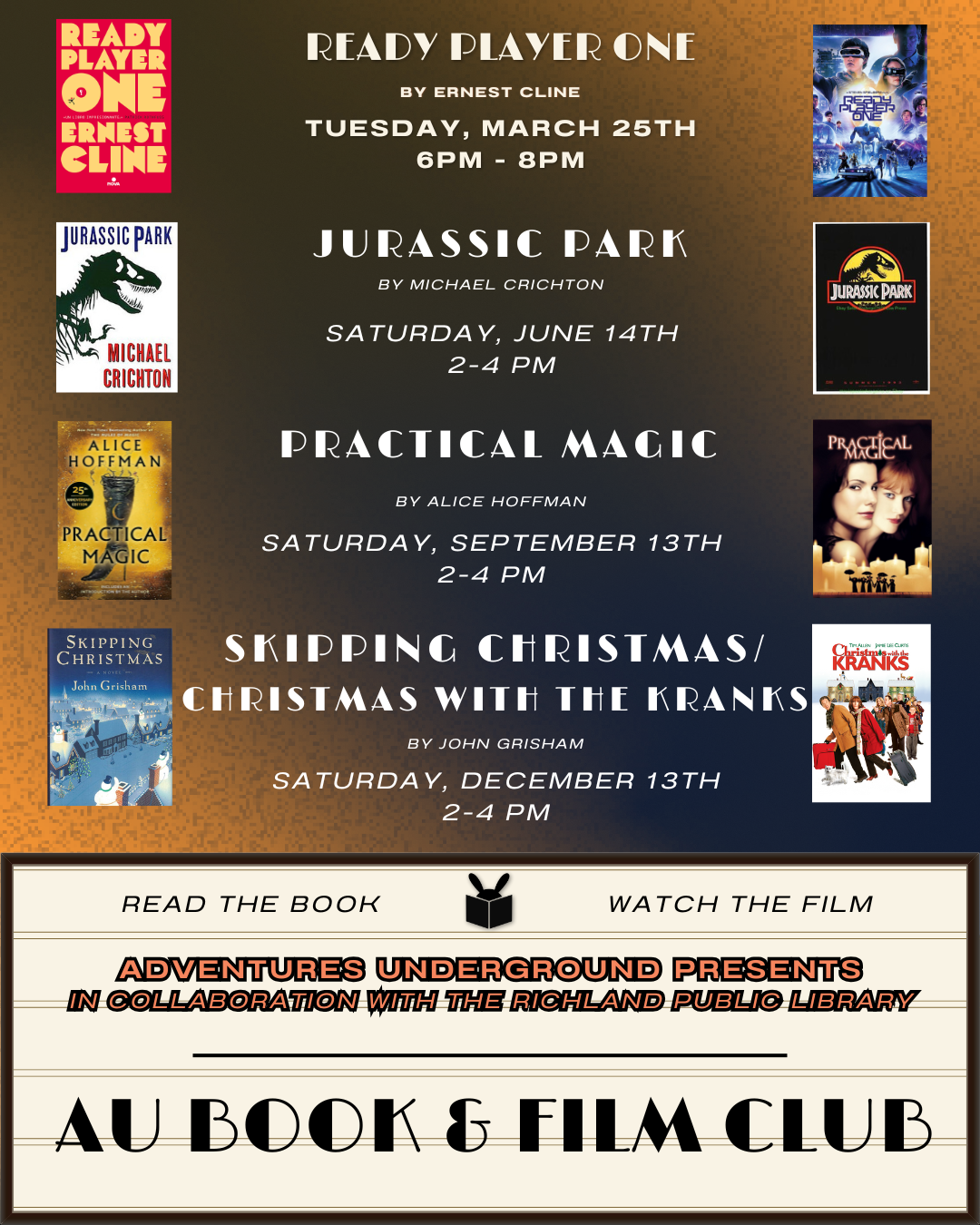 We have collaborated with the Richland Public Library to host a quarterly book and film club where we will read a book, then watch its movie adaptation together. Afterward, there will be time to discuss the differences.
