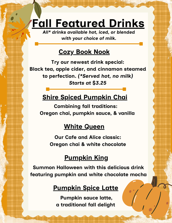 A little bit geeky, a little bit rock 'n roll. We're enthusiastic about the things we love, including coffee, tea, beer, music, our favorite books, movies, and superheroes. You'll see that love reflected in our decor and our menu is inspired by all those things.