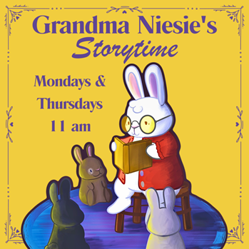Bring your little buns and enjoy a story with Grandma Niesie! Mondays and Thursdays at 11 AM!