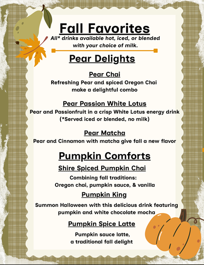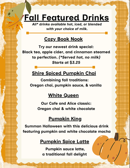 A little bit geeky, a little bit rock 'n roll. We're enthusiastic about the things we love, including coffee, tea, beer, music, our favorite books, movies, and superheroes. You'll see that love reflected in our decor and our menu is inspired by all those things.